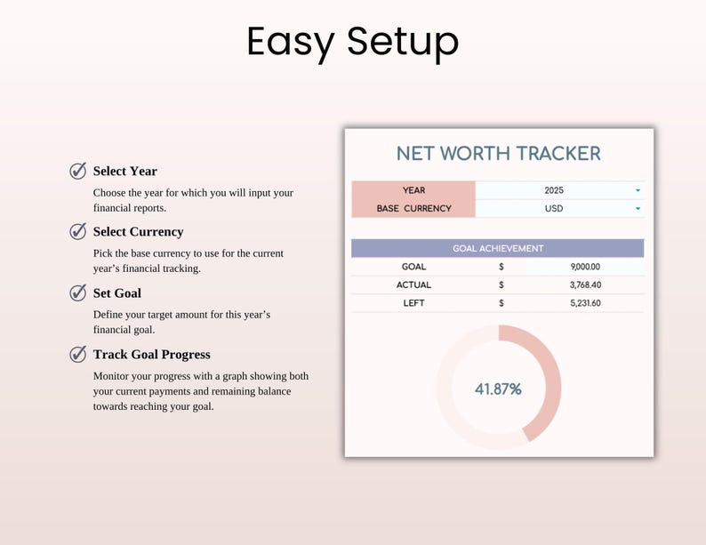 Net Worth Tracker Template, Multi-Year Dashboard Spreadsheet, Google Sheets Template, Net Worth Yearly Calculator, Investment Tracker